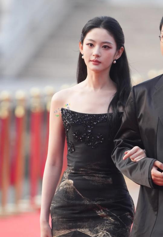 和她同场活动上的祝绪丹这次造型打扮得像个小公主,皮肤雪白可以看见血管。